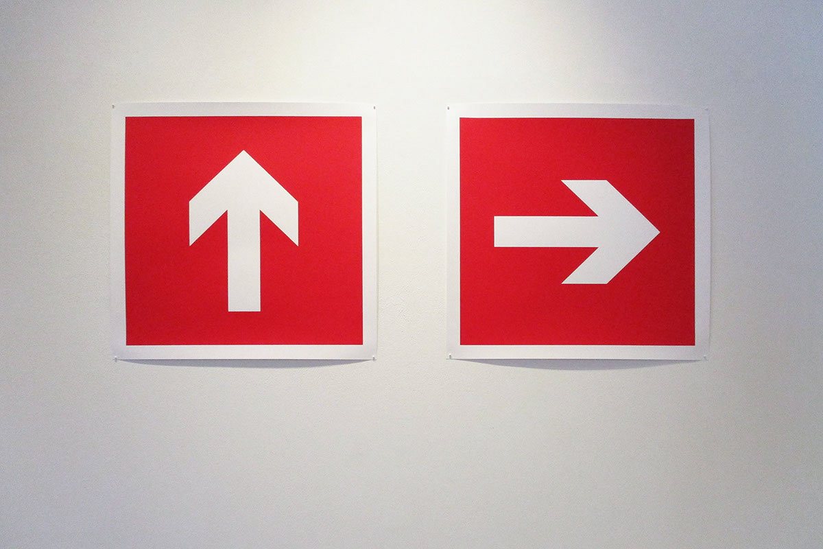 one arrow (left eye looking up, right eye looking right)